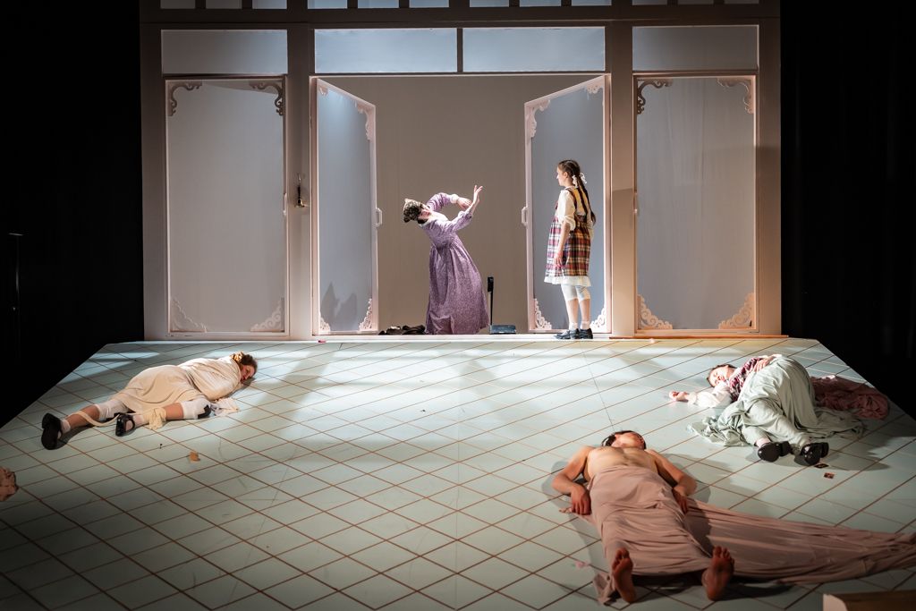 Otroštvo se v predstavi ne razpira zgolj kot prostor idealov, temveč kot prostor, ki ga najmočneje določajo odrasli. Stik z njimi je redko ljubeč in nežen, saj predvsem rojeva travme, ki jih dekleta v začasni skupnosti sestrstva skupaj predelujejo. S tem se poleg odraščanja njihovih teles razvija tudi njihovo samozavedanje in sposobnost za bližino, zaupanje in upor. Uprizoritev njihove notranje svetove riše z izrazito ekspresionističnimi in simbolističnimi principi, s sodobnimi gledališkimi postopki jih pretvarja v žive podobe, ki se rojevajo iz realnega in prehajajo v grozljivo. In vendar v tem niso nikoli same, druga za drugo skrbijo in si pomagajo.